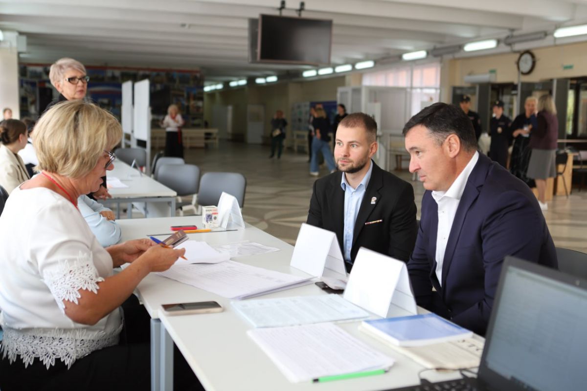 Мэр Иркутска Руслан Болотов и ветеран СВО Евгений Косолапов проголосовали на выборах губернатора на одном избирательном участке
